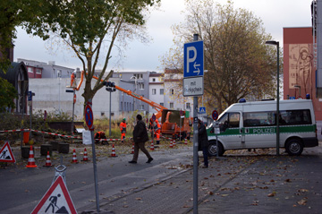 Am Montagmorgen ratterten die Motoren im kommunalen Kreativquartier an der Marienkirche: Trotz über 15.000 eingereichter Unterschriften gegen die mutmaßliche Geldvernichtungsmaschine „Musikzentrum“ setzte die rot-grüne Betonkoalition gerichtlich durch, dass der fünfzehntausendfache BürgerInnenwille mit der Kettensäge zerstückelt werden darf. Ohne einen bereits im Januar möglichen Bürgerentscheid abzuwarten, wurden ausgerechnet unter Berufung auf die kommunale Baumschutzsatzung terminliche Sachzwänge konstruiert, um eine umgehende Fällung von insgesamt 19 Platanen an der Viktoriastraße zu forcieren. Und das, obwohl die wunderschönen Bäume auch aus stadtklimatischen Gründen unbedingt erhaltenswert waren.